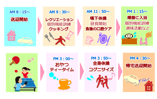 古淵デイサービスの1日のスケジュールDaily schedule