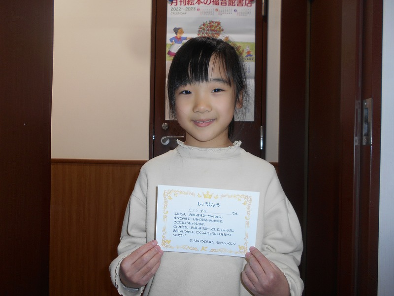 「おめでとう!」と声をかけると、恥ずかしそうな、嬉しい笑顔を見せてくれました!