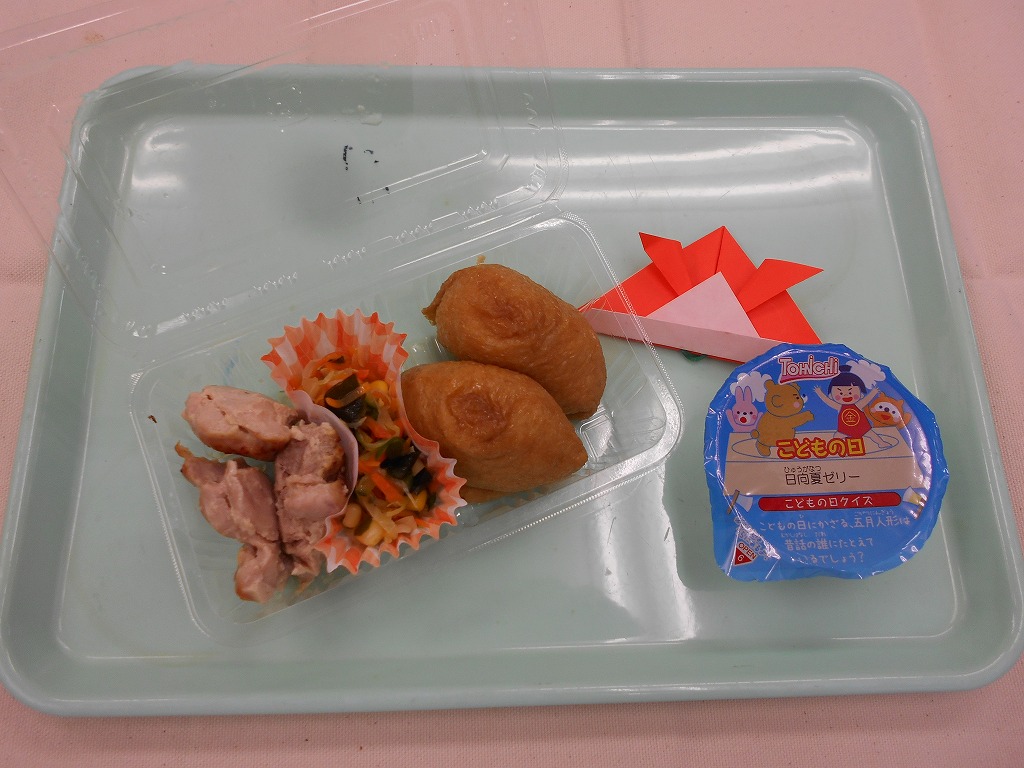 兜の折り紙は、今日に向けて、給食室のみんなでコツコツ作りました。子ども達へのプレゼント!です。