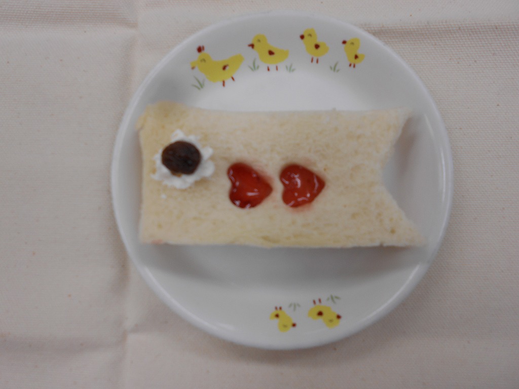 またおやつは、いつものジャムサンドを鯉のぼり型にカットし、可愛らしく出来上がりました!