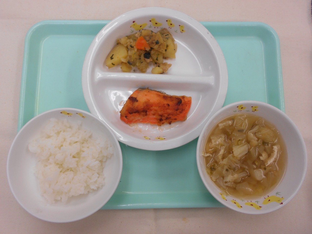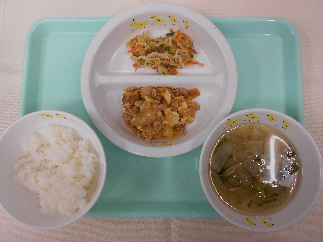 すまし汁(キャベツ、油揚げ、小ねぎ)