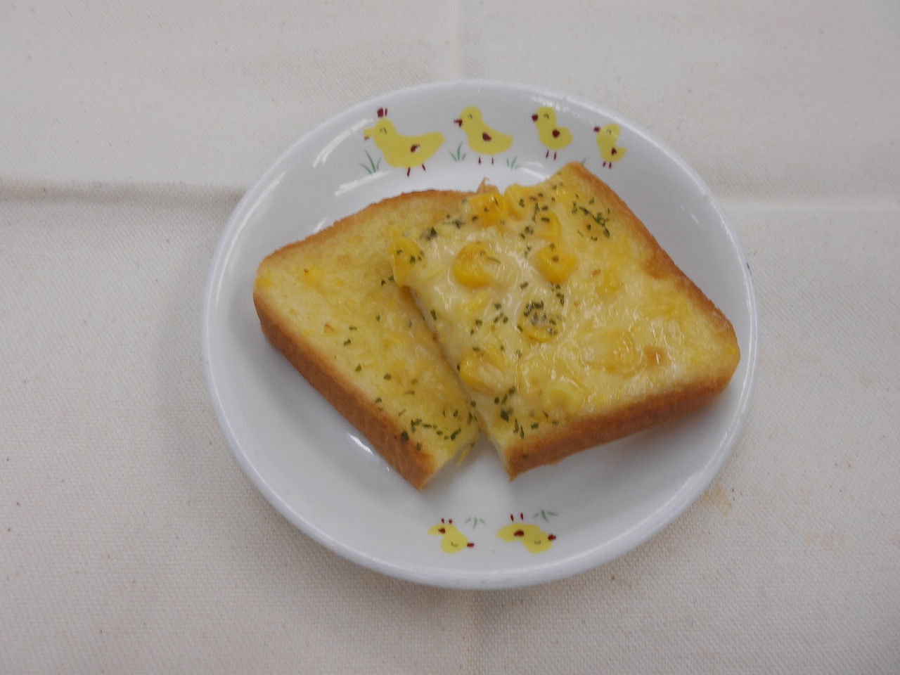 コーンマヨトースト、牛乳