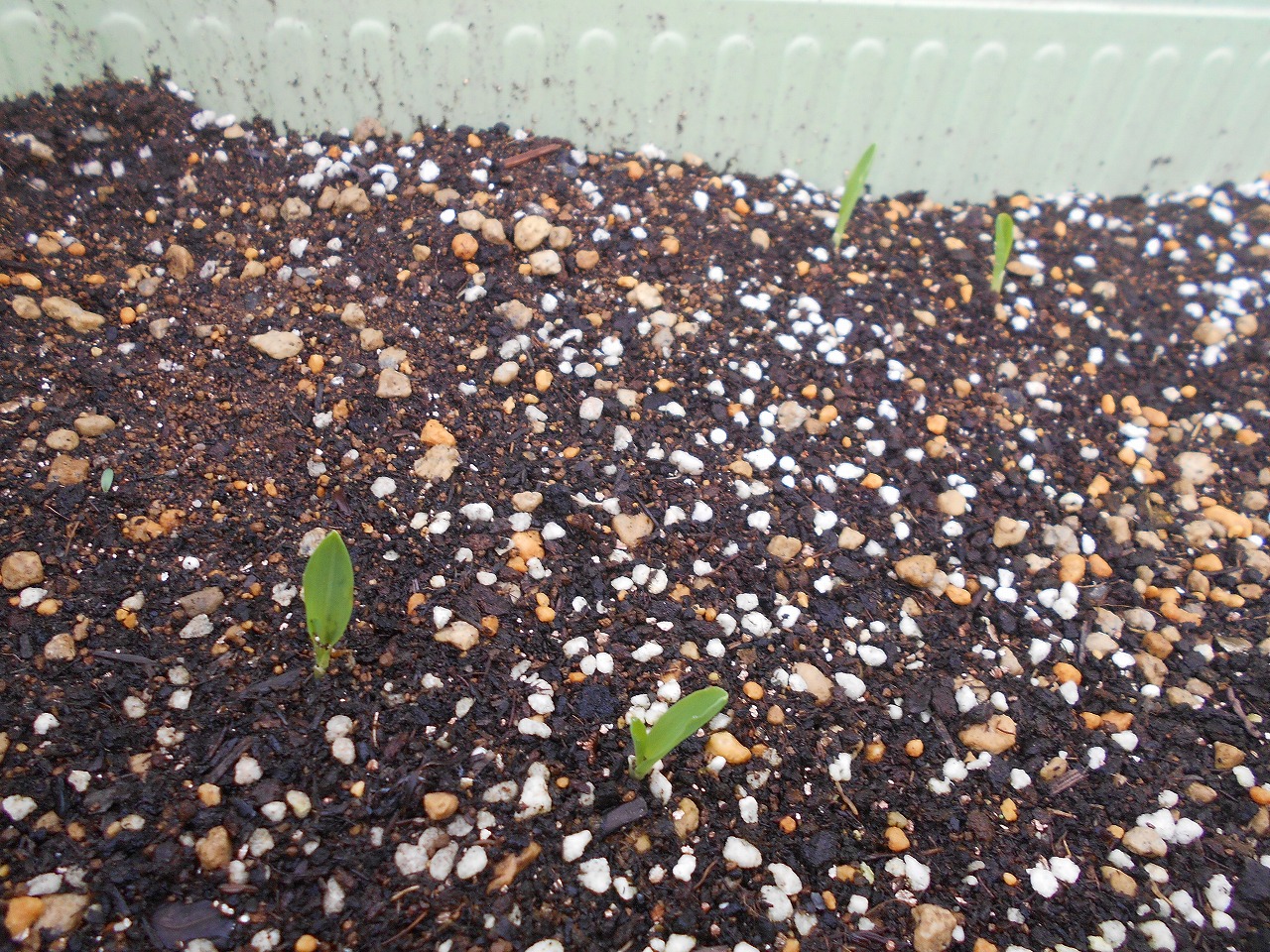 先週、種まきしたとうもろこしの芽が出てきました!