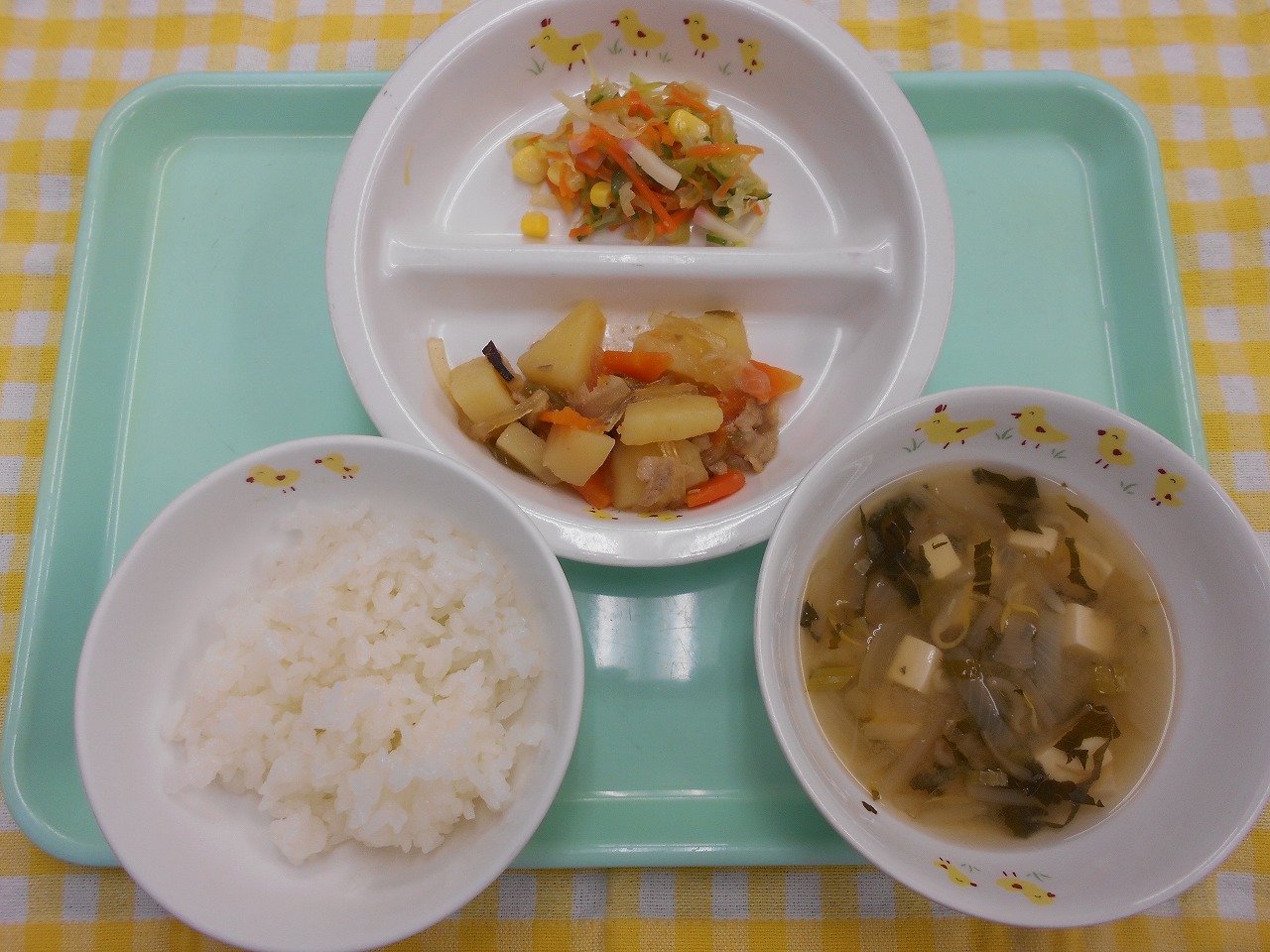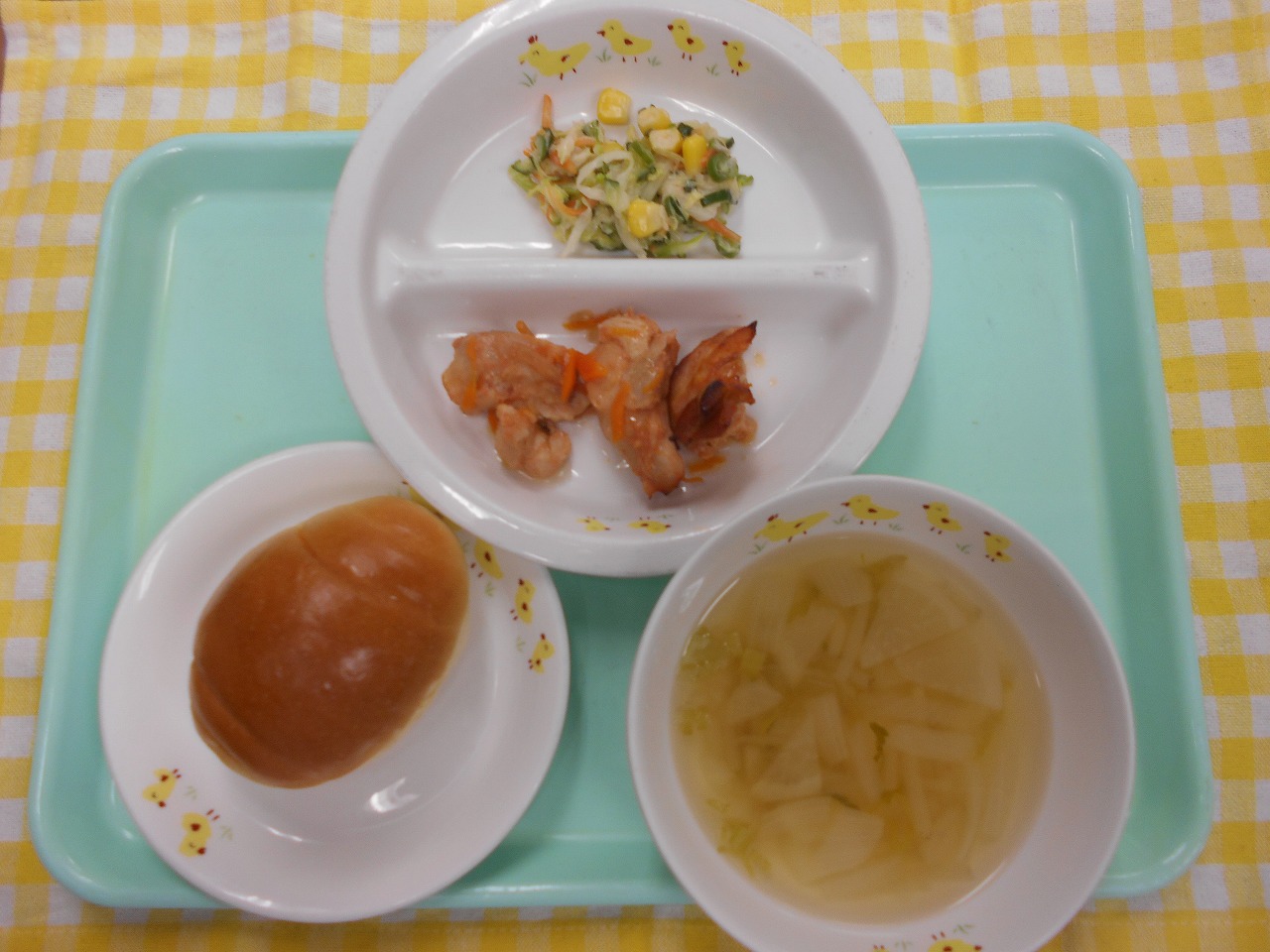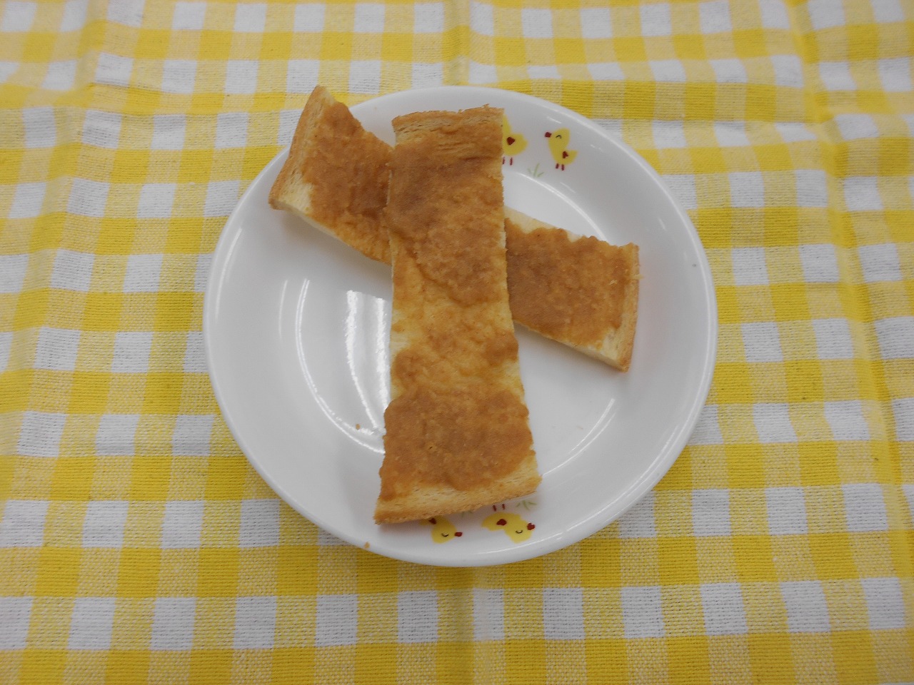 切り干し大根の入ったサラダは、歯ごたえが残るように、具材の野菜も普段より少し大きめにカットしました。おやつには、パンを焼いて乾燥させたラスクなど、今日は「噛む」ことを意識したメニューになっています。