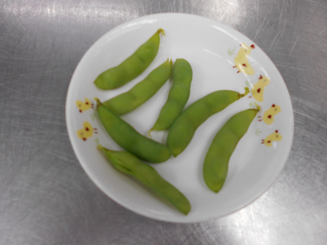 今日は、さくらぐみさんが枝豆を収穫して、給食室に持ってきました!