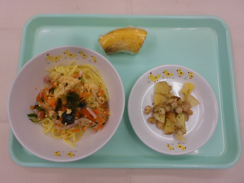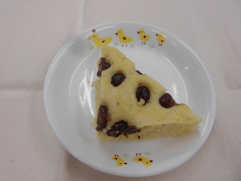 今日は、1年の折り返し「水無月(みなづき)」を食べる日です。本来は、白いういろうの上に、甘く煮た小豆を乗せ、三角に切り分けるものですが、こども園では、水無月に見立てた蒸しパンを作りました!暑い夏に負けず、残り半年も元気に過ごせますように!