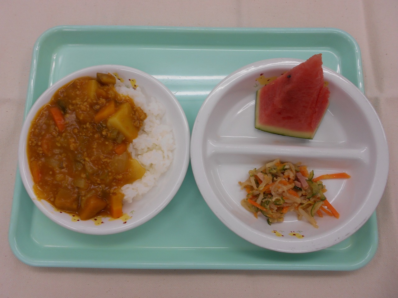 今日のカレーには、すみれ2くみさんが収穫したなすを入れました!