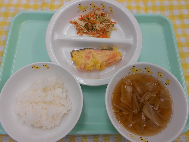 昨日、おじさいぐみの子ども達がお手伝いしてくれたピーマンが、おいしいサラダに変身!きれいに完食しました!!