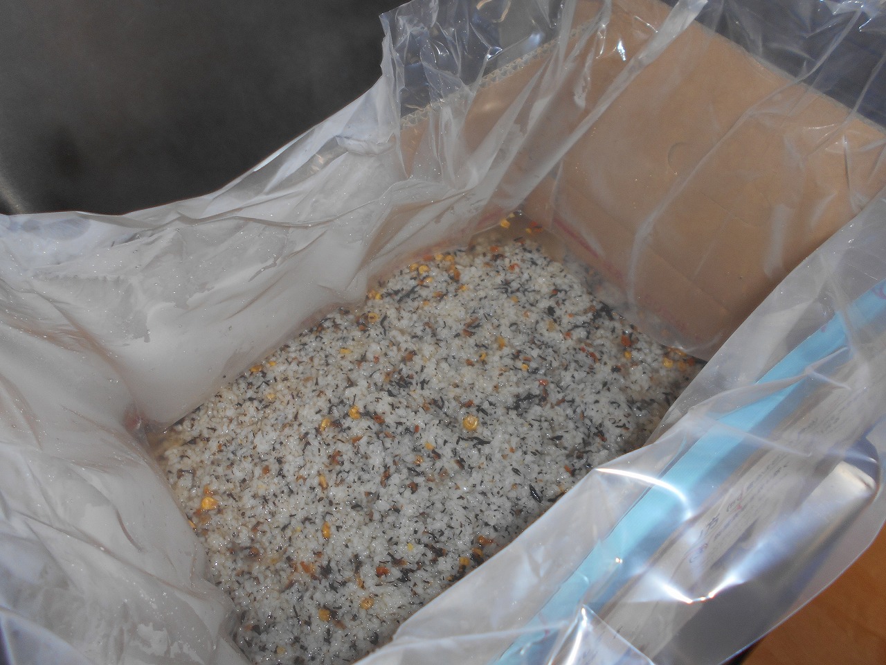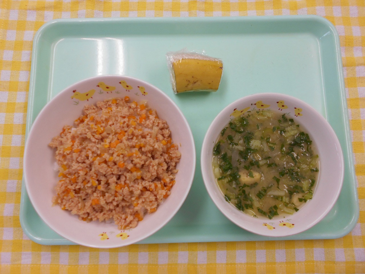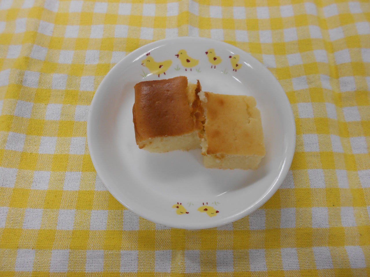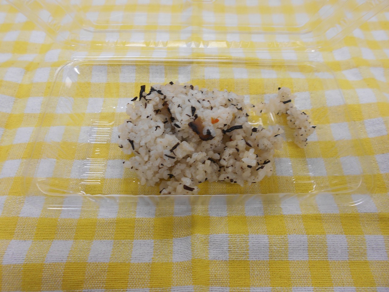 今日の引き取り訓練に合わせ、おやつはα米でできた非常食を提供しました。普通のお米に比べると、食べにくいかもしれませんが、