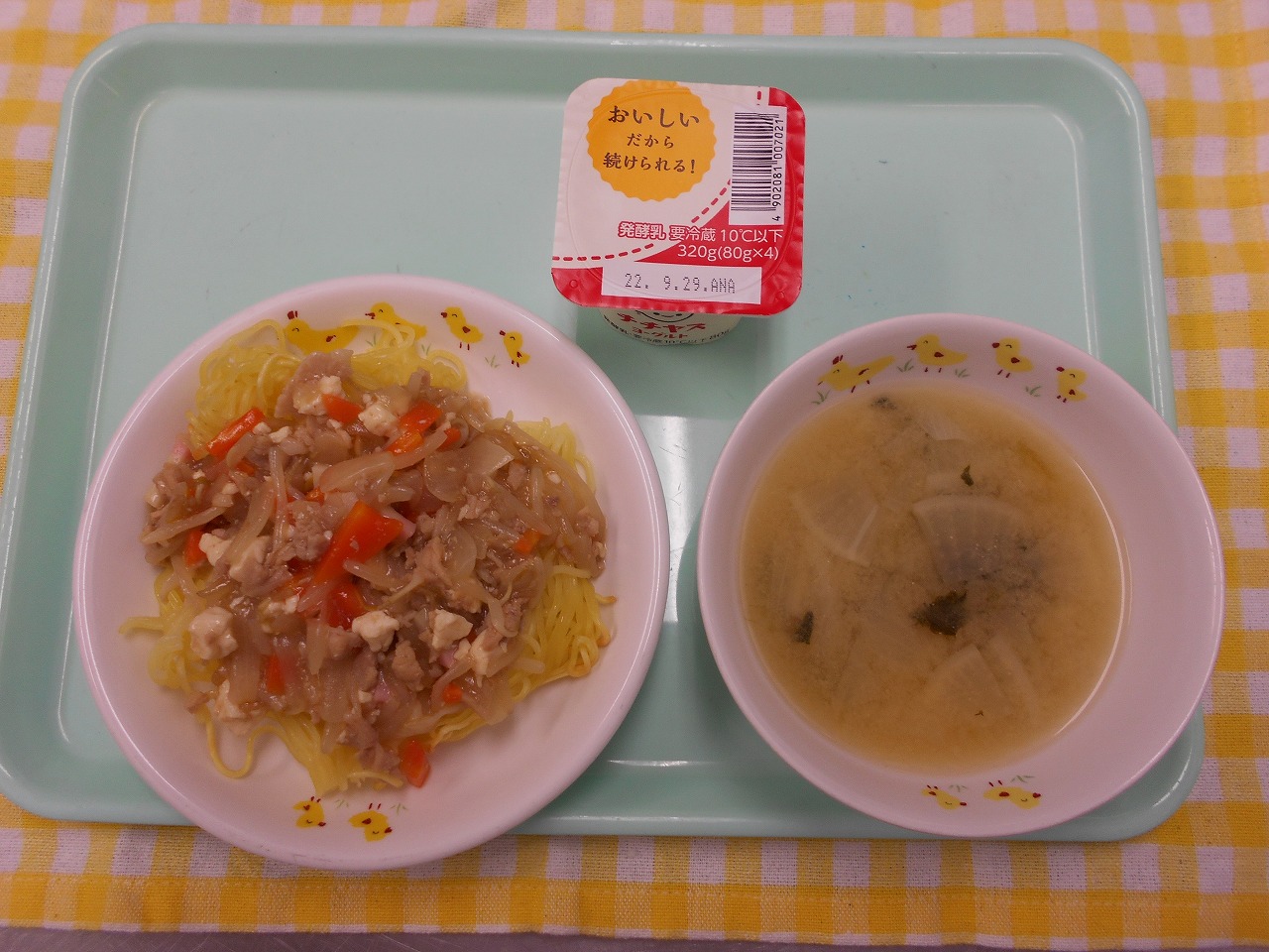 そして昼食には、あじさいぐみの子ども達に、種を取ってもらったピーマンで「無限ピーマン」を作りました。