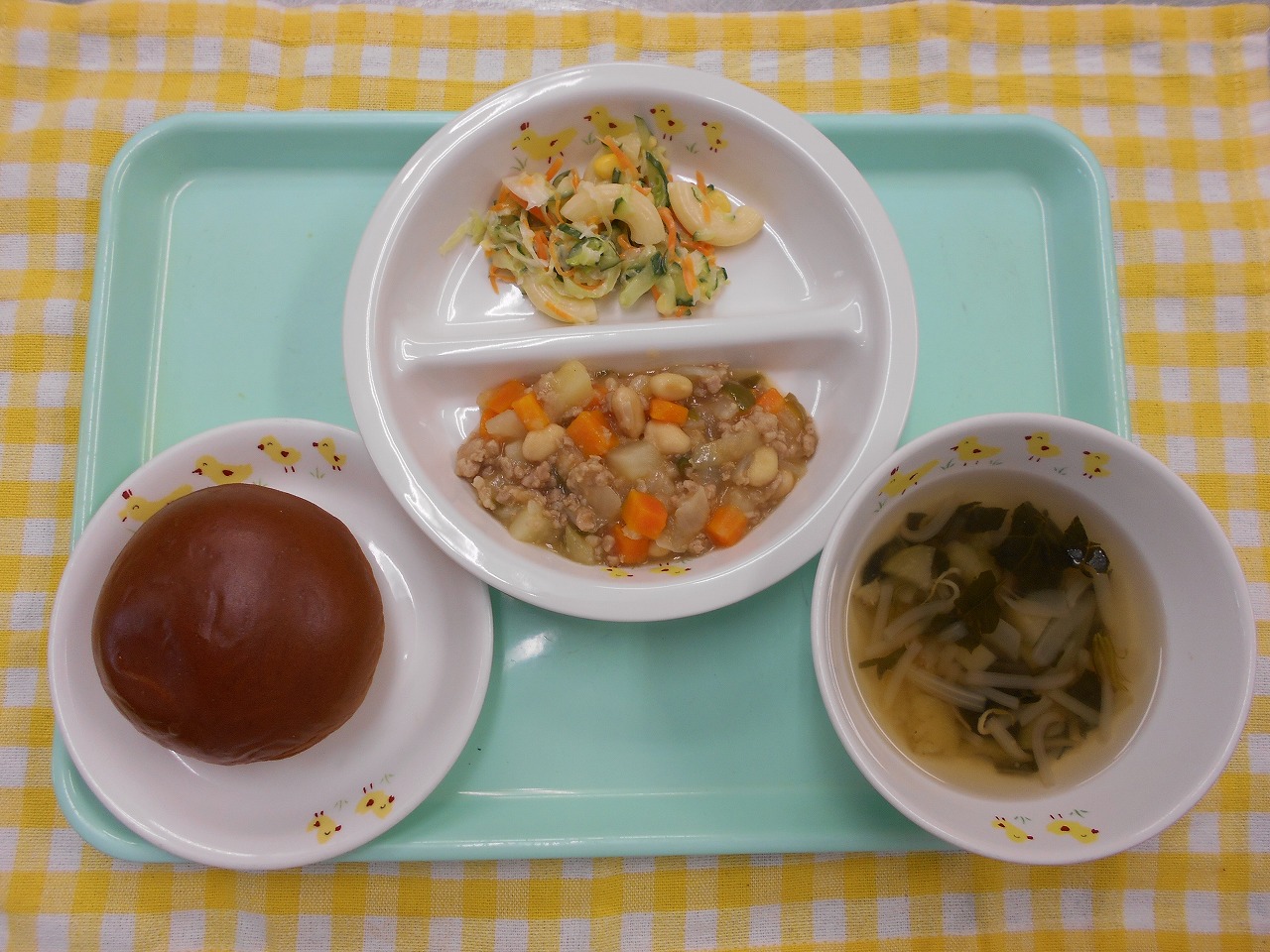 野菜蒸しパン、牛乳