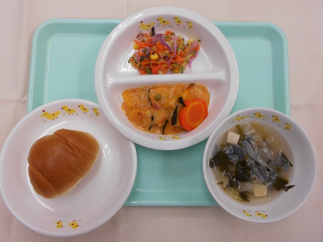 南瓜の入ったトマトクリーム煮に、紫キャベツを使って、ハロウィンカラーを意識したサラダを作りました!
