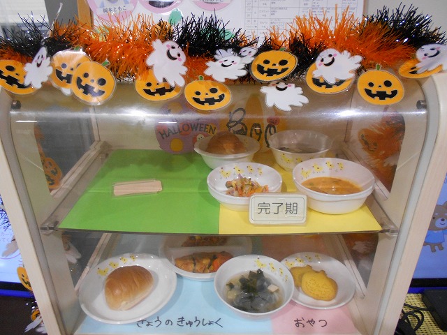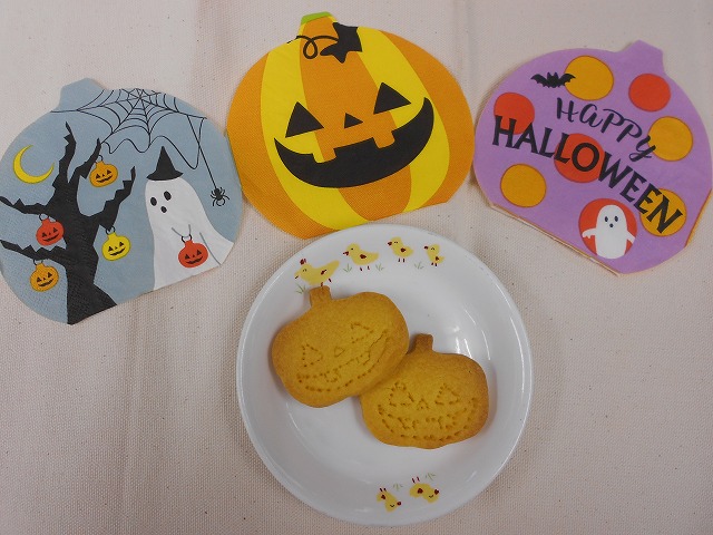 おやつは、型抜きクッキーです。写真のように、顔は書けませんでしたが、喜んでもらえると嬉しいです!