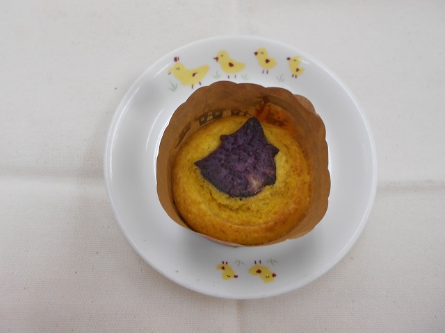 おやつは、南瓜のカップケーキ!上には、紫芋で作ったお化けの姿が・・!!今年のハロウィン当日は、去年より楽しめるといいですね!