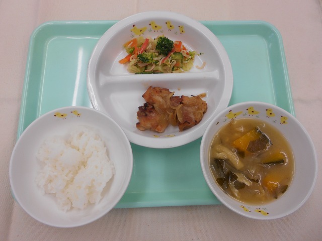 味噌汁(かぼちゃ、もやし、油揚げ、わかめ)