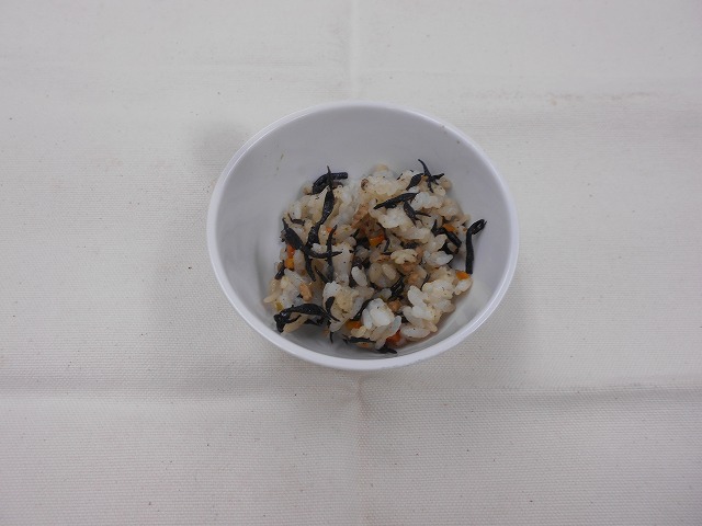 ひじきの混ぜごはん、麦茶