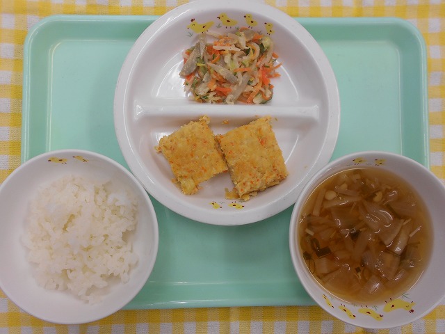 コンソメスープ(じゃがいも、もやし、ほうれん草)