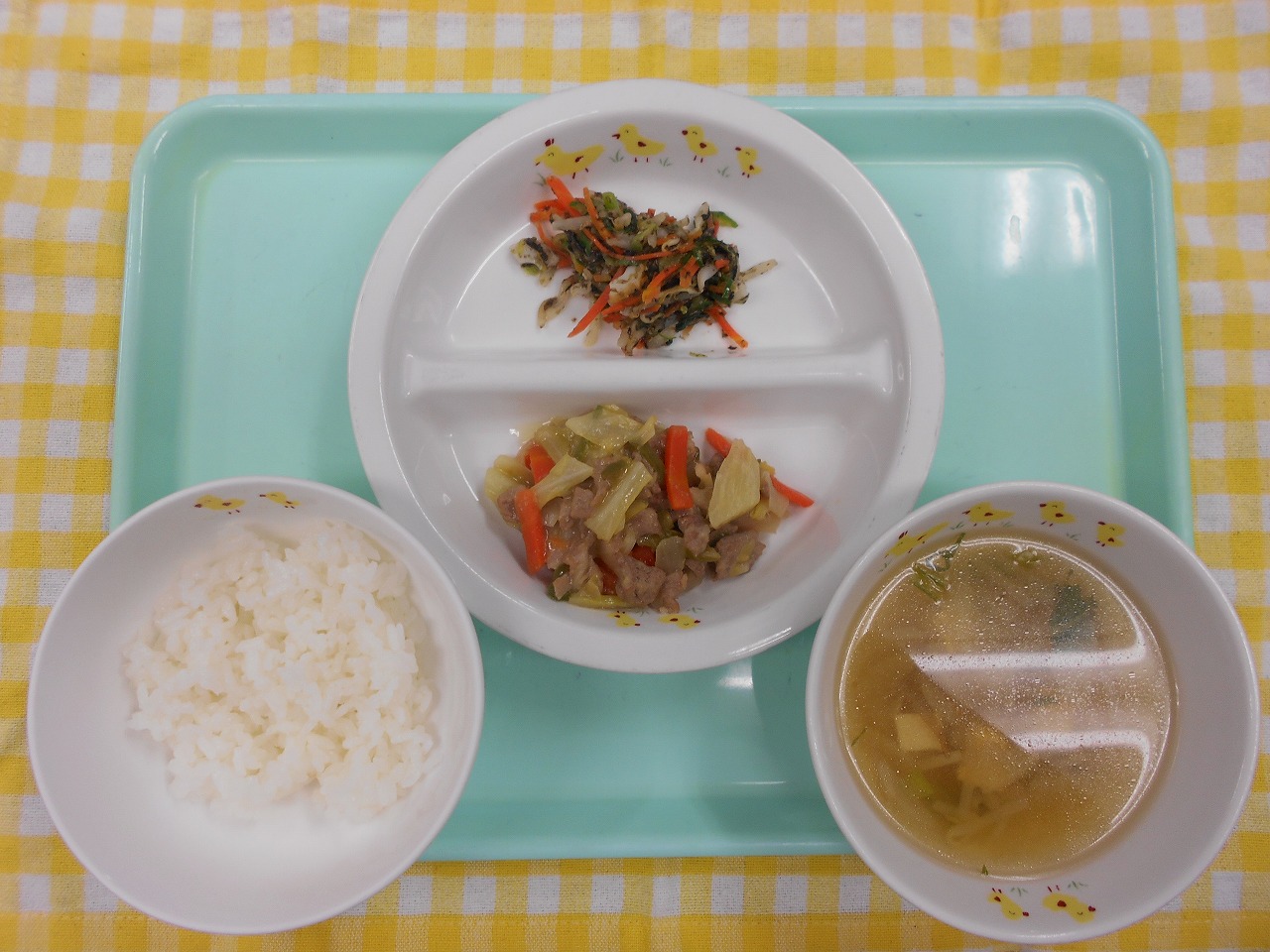 味噌汁(白菜、厚揚げ、ほうれん草)