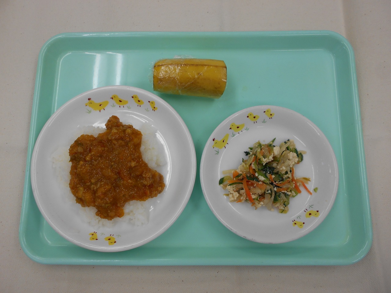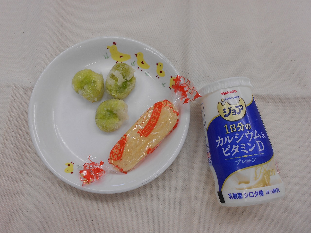 こども園では、さやから出した空豆の皮をむき、てんぷらにしました!