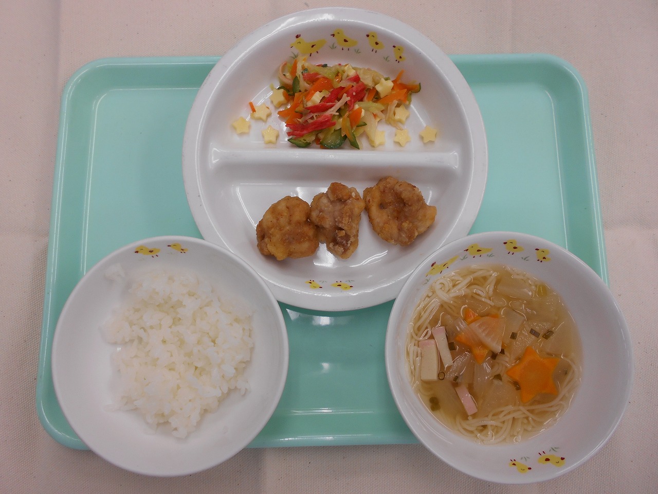 星の形をしたチーズの入ったサラダや、にゅうめんには、星の形に抜いた