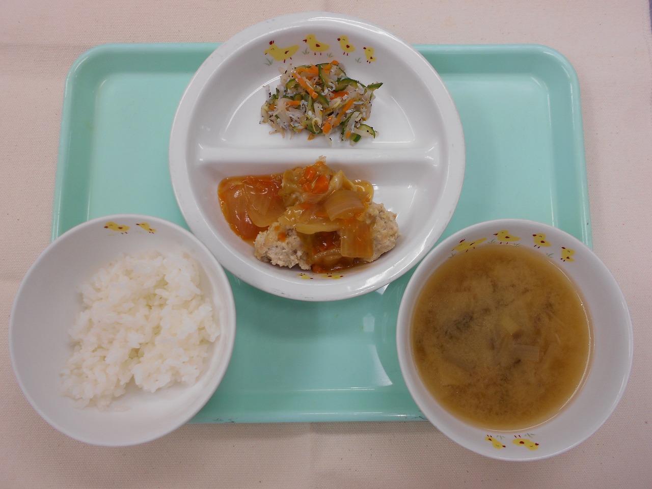 ハンバーグ(オニオンソース)⇒肉団子の甘酢あんかけ