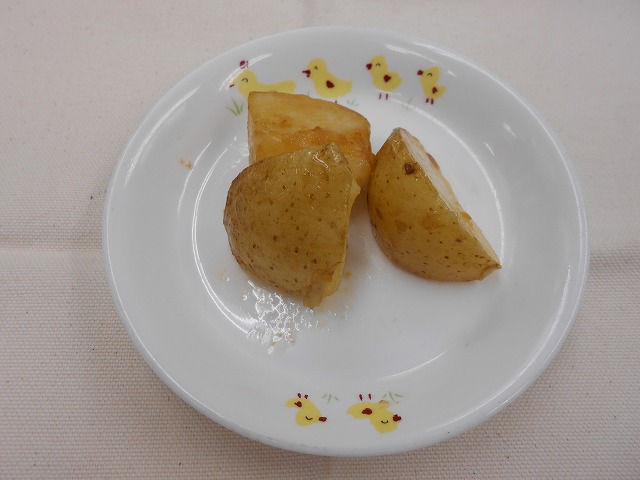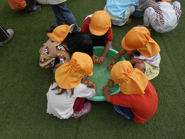 水の中でコロコロ、ナデナデ、と上手に洗うことができ、とっても美味しいベイクドポテトができました!あじさいぐみさん、お手伝いありがとう!