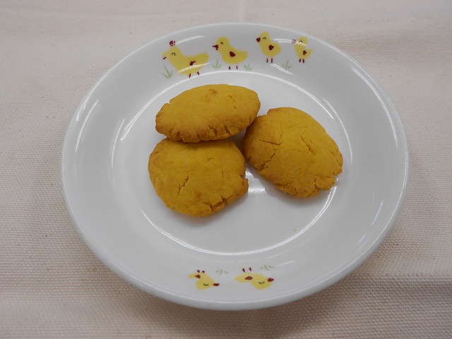 生地にかぼちゃを練り込んだことで、パサつきが少なく、食べやすいクッキーができました!子ども達も、いっぱい食べてくれました!!