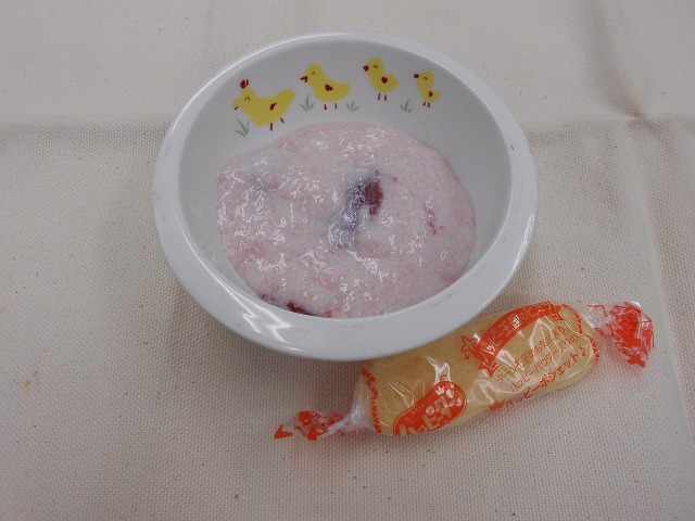 フルーチェ、せんべい、麦茶