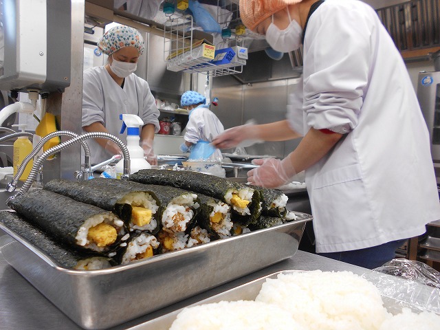 いつもの倍近い数を巻くために、給食室のみんなは必死!!でしたが、無事に時間内に作り上げることができました。