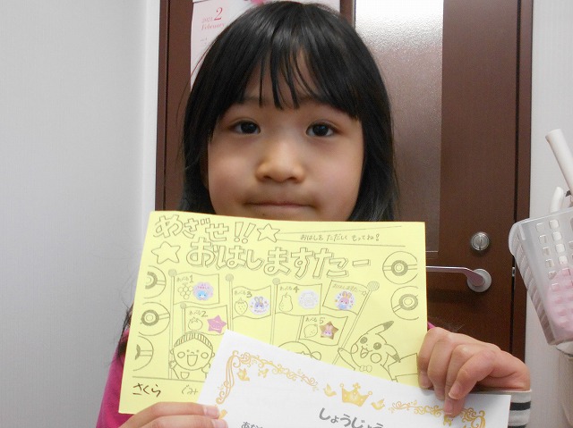 おめでとう!!これからも上手におはしを使って、給食をたくさん食べてね!