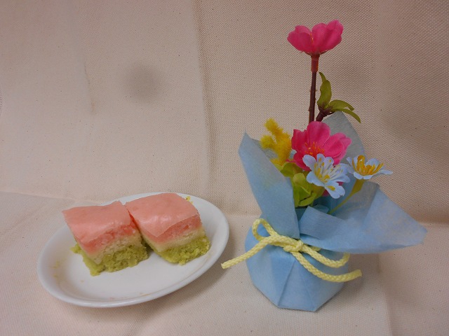 そして、おやつは菱餅をイメージした蒸しパンを作りました!