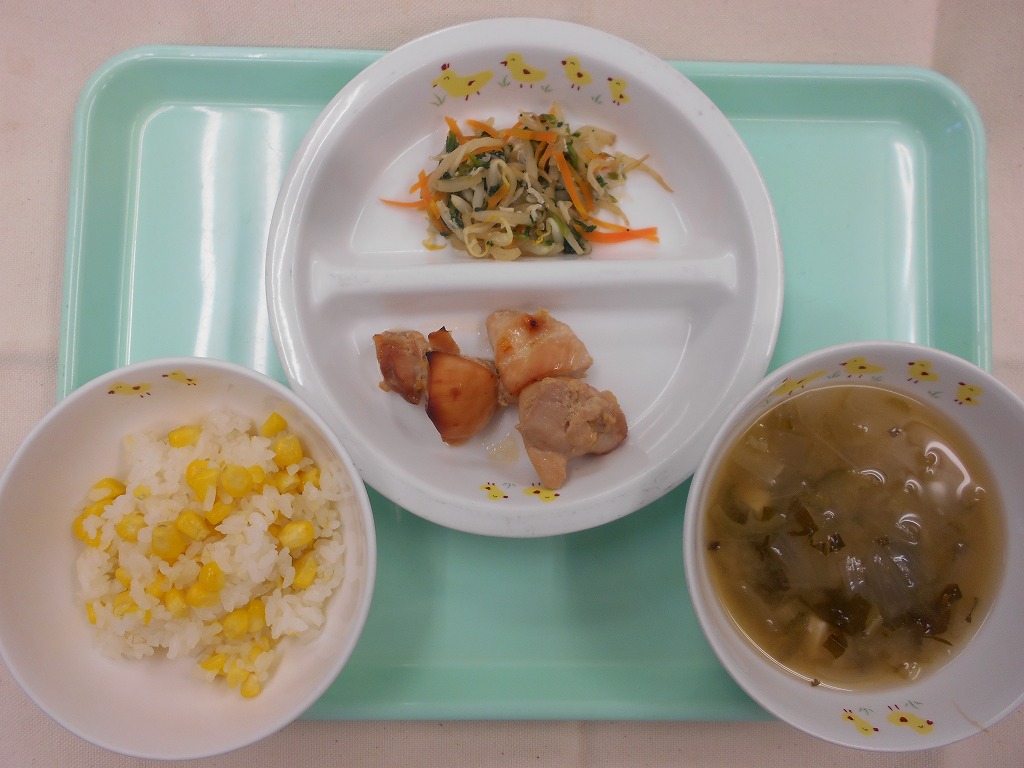 昨日、ちゅうりっぷぐみのみんなが、皮むきしてくれたとうもろこしを炊き込んだ、とうもろこしごはん!!