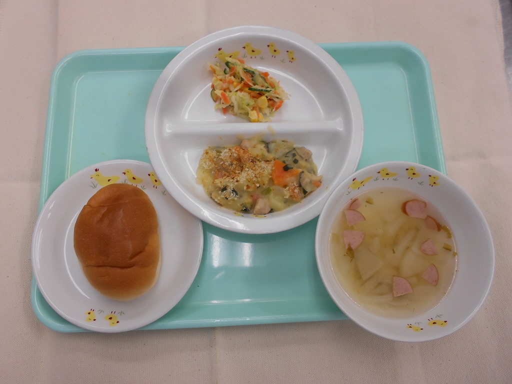 コンソメスープ(かぶ、しめじ、ウインナー)