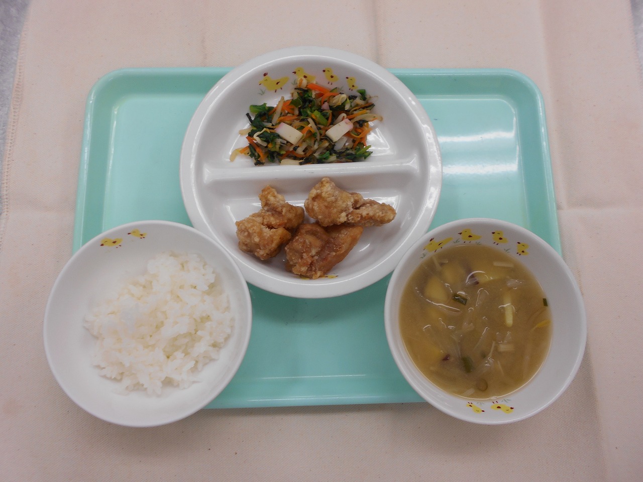 味噌汁(さつま芋、もやし、えのき、小ねぎ)