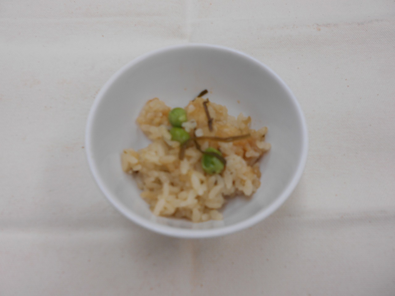 しらすと昆布の豆ごはん、麦茶