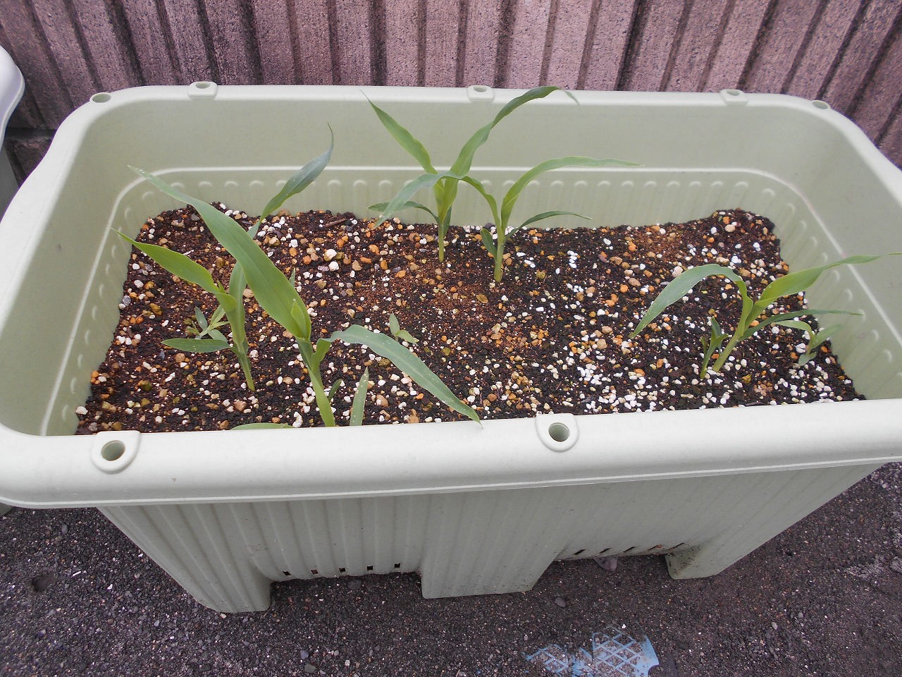 さくらぐみさんと植えたとうもろこしは、園庭でぐんぐん成長中!