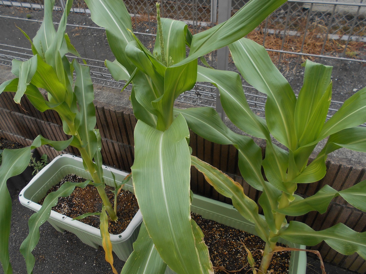 園庭で育てているとうもろこしも、ぐんぐん大きくなり、穂が見えてきました!