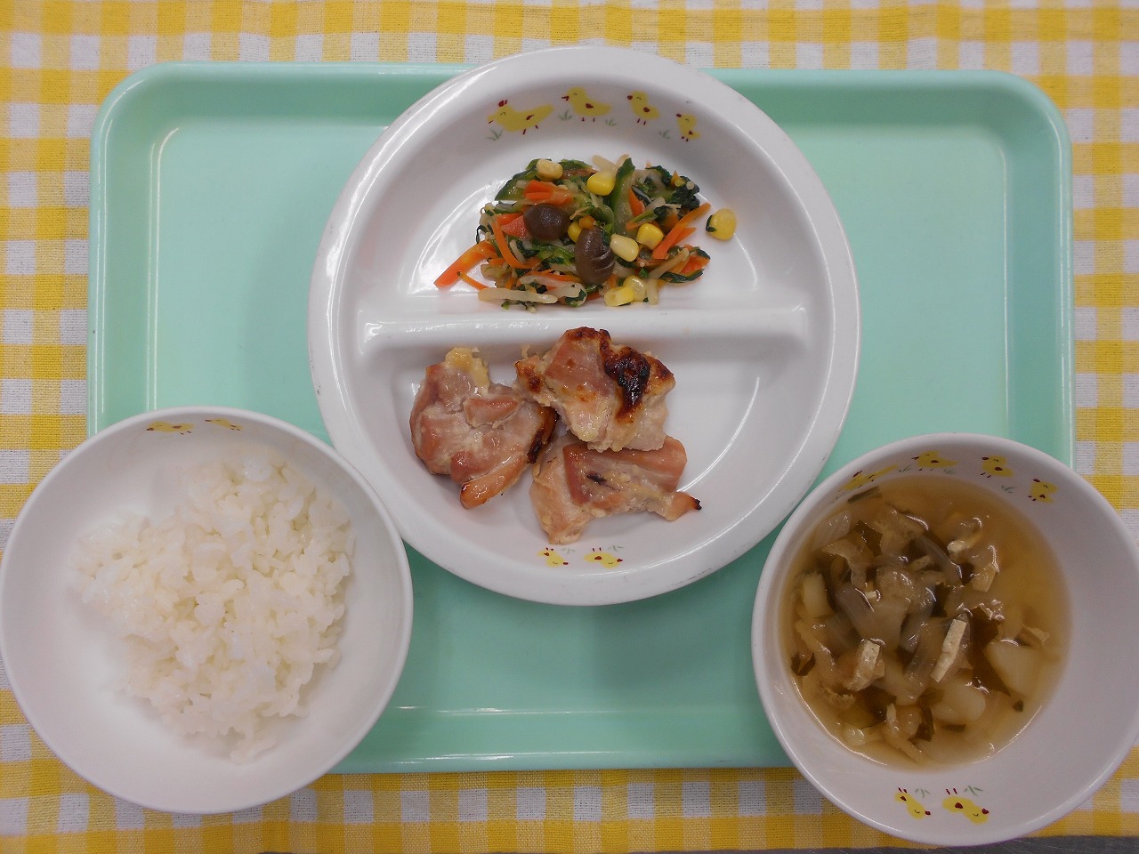 すまし汁(じゃが芋、油揚げ、わかめ)