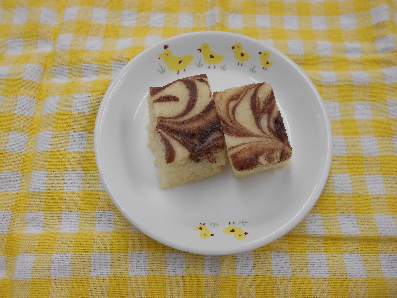 マーブル蒸しパン、牛乳