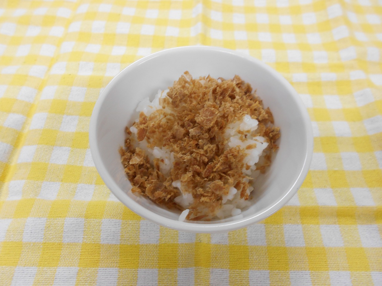 ふりかけごはん、麦茶