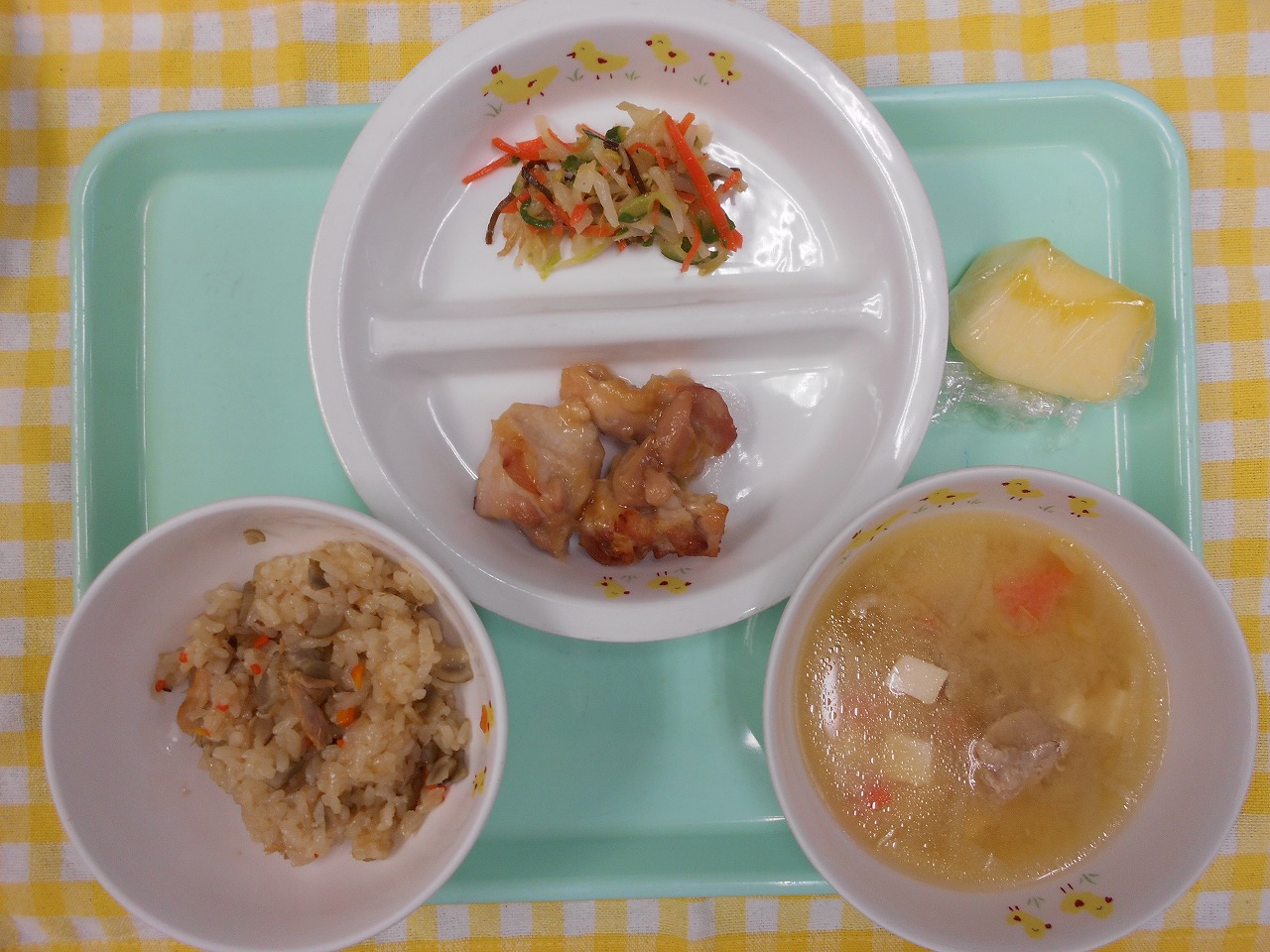今日のメニューは、もち米を混ぜて作ったおこわに、体の温まる豚汁です。寒さが厳しくなり、空気も乾燥してきたので、しっかり食べて、体調を崩さないように気を付けましょう!