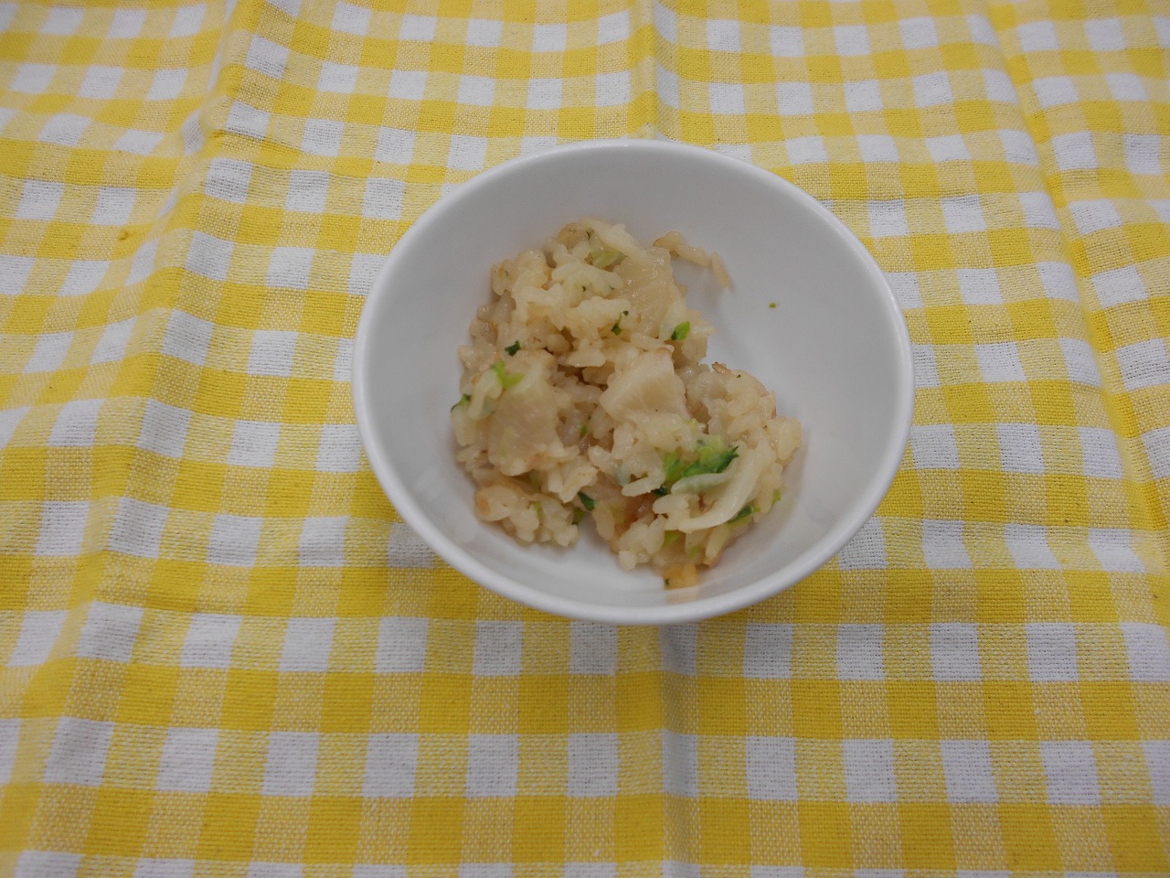 明日は土曜日なので、一足早く今日のおやつに、七草の入った炊き込みご飯を作りました。野菜が多く、苦手かな?と思いましたが、よく食べてくれたそうです!!
