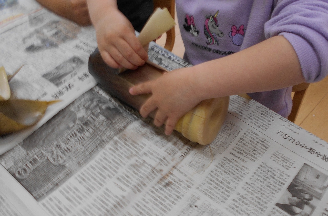 また、昨日と違って、竹の子の美味しそうな匂い!「さつま芋みたい!」「コーンみたい!」「美味しそうな匂い!」など、色々な声が上がりました。