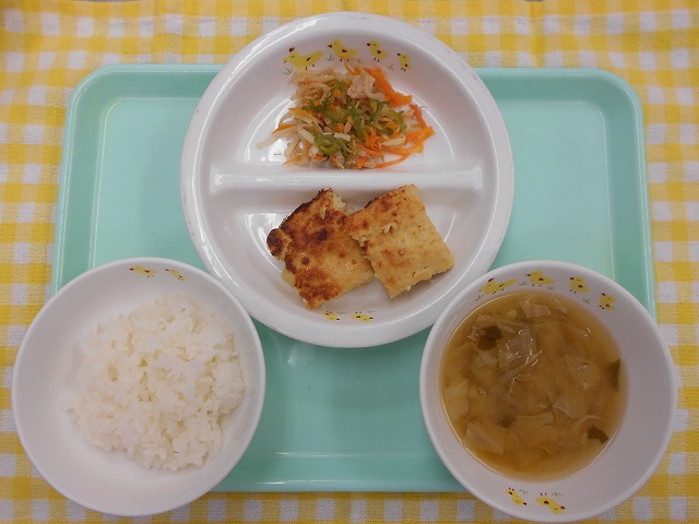 昨日、おじさいぐみの子ども達がお手伝いしてくれたピーマンが、おいしいサラダに変身!きれいに完食しました!!