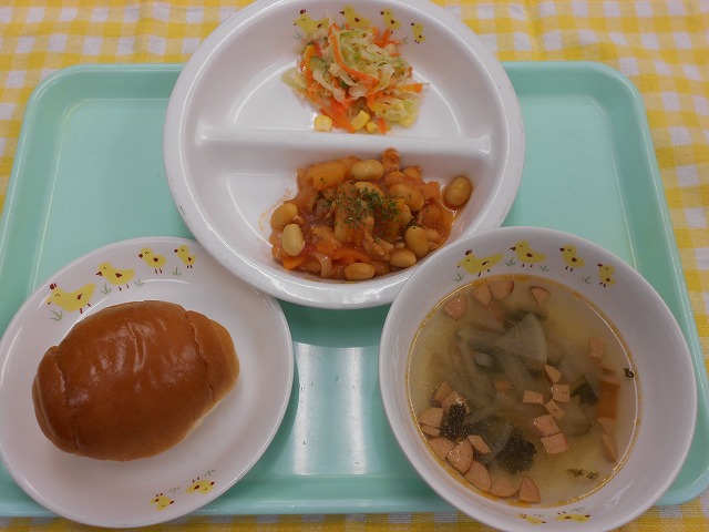コンソメスープ(ウインナー、大根、もやし、ほうれん草)