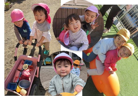 こども園の園庭で在園児や保育教諭と一緒に遊ぶことができます。