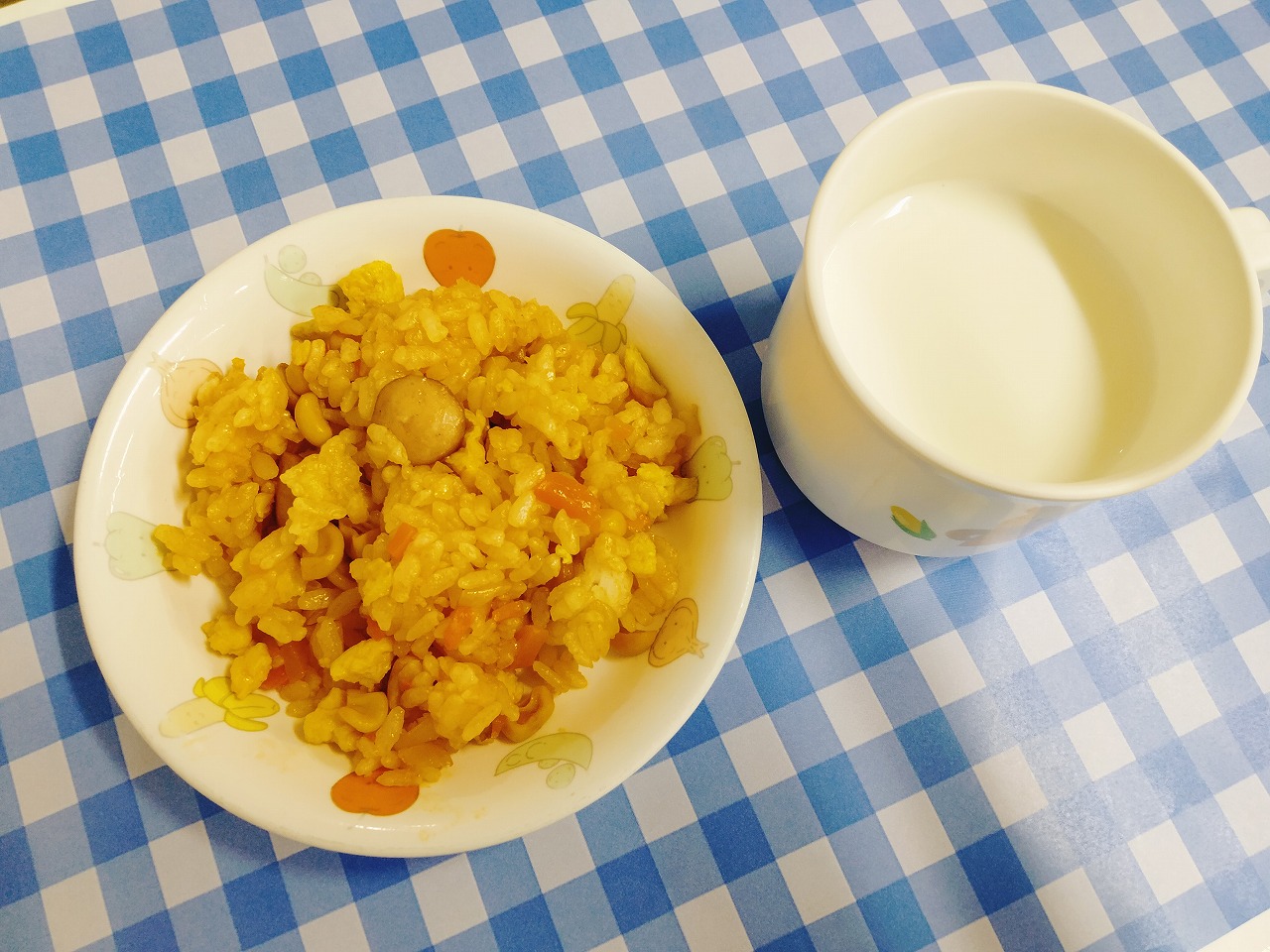 おやつはオムライス風混ぜごはんと牛乳です。