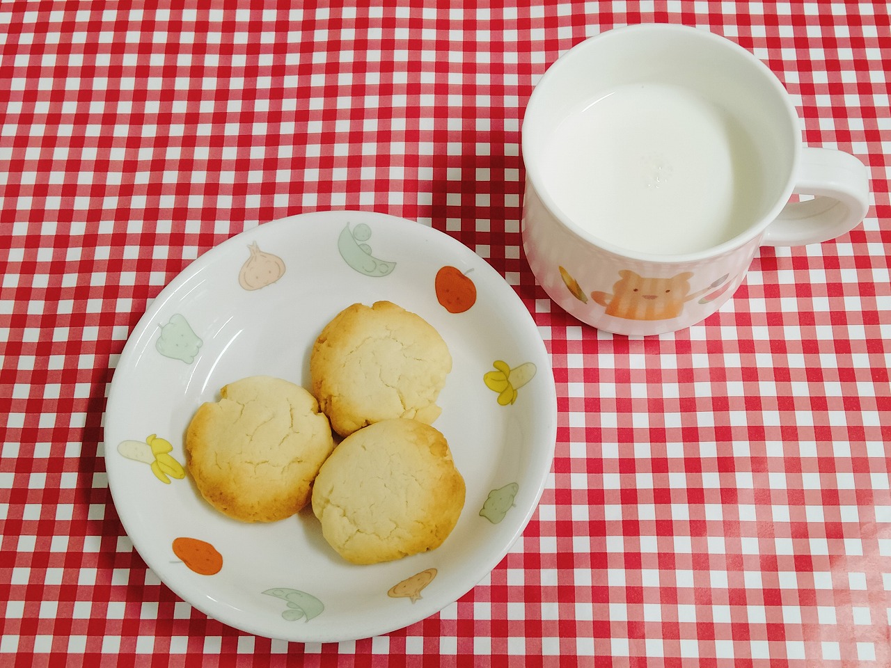 おやつはチーズクッキーと牛乳です。