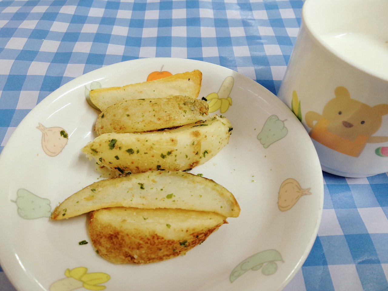 おやつはカントリーポテトと牛乳です。