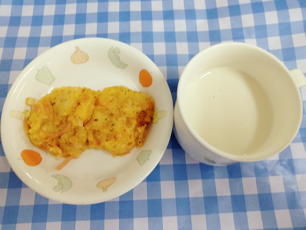 おやつはにんじんクッキーとフルーツ豆乳です。